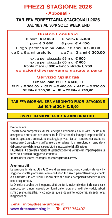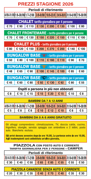 Scarica il PDF dei prezzi per la stagione 2026 qui>>